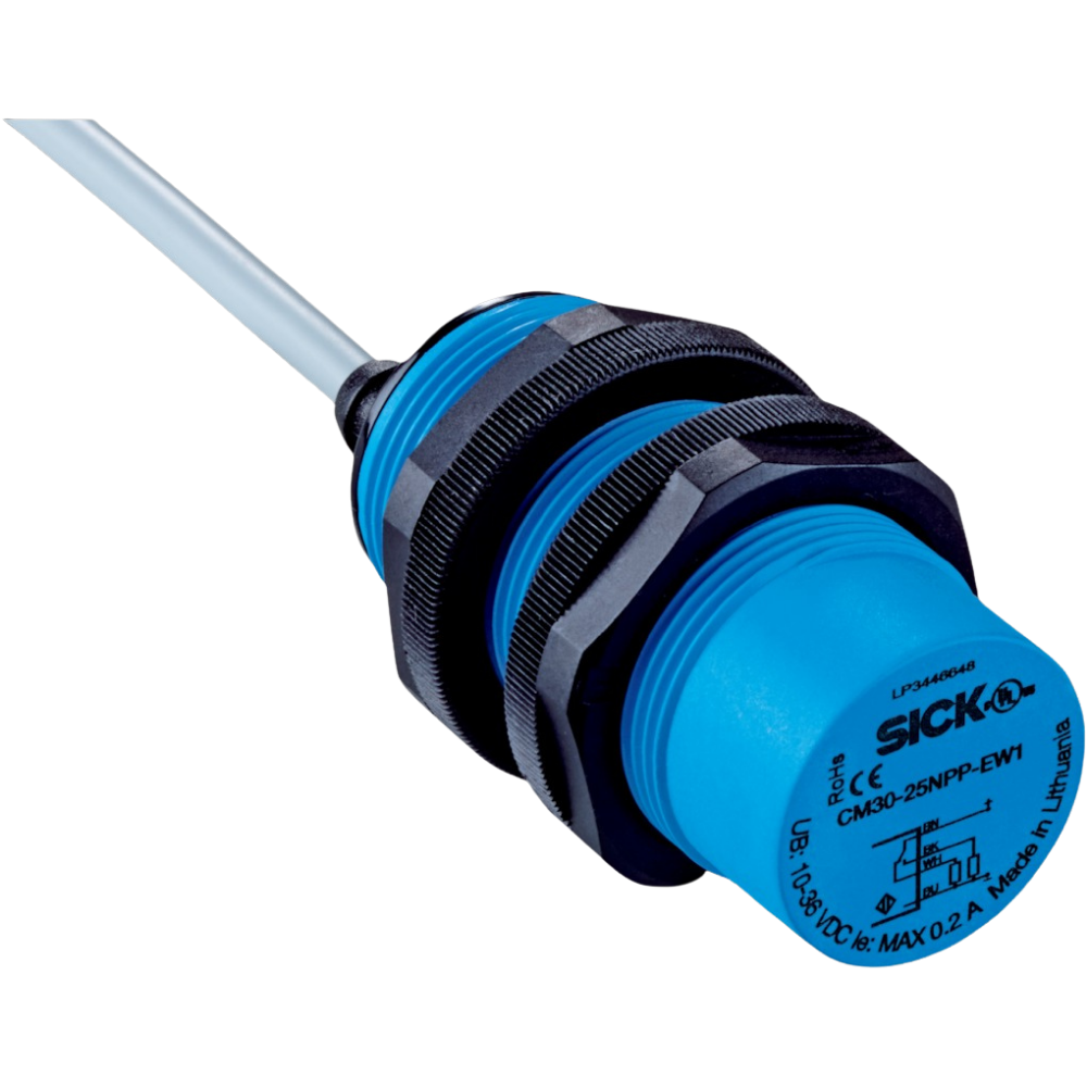SICK CM30-25NNP-EW1 (CM Series) | Adjustable Non-Flush Capacitive Proximity Sensor — M30, 4–25 mm, NPN NO+NC, IP68/IP69K
